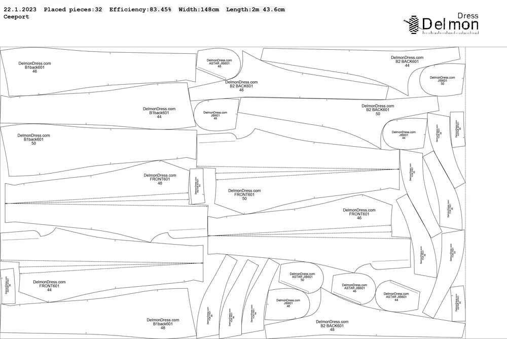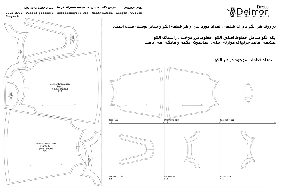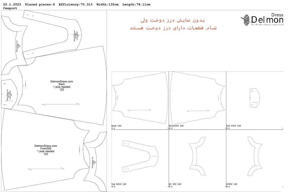 - فایل PDF چیدمان راهنمای خوبی برای برش قطعات بر روی پارچه است برای صرفه جویی در زمان(نکته در صورتی که عرض دقیق و طول پارچه را اعلام کرده باشید)